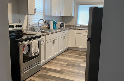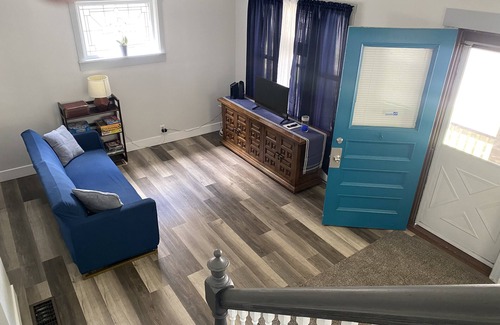 Fully renovated June 2022. Place to Unwind. Brand new appliances & furniture. Surrounded by private residences. Upstairs has 2 full size beds and 1 bath. Downstairs sofa convertible to a queen size bed. Dedicated workspace.
