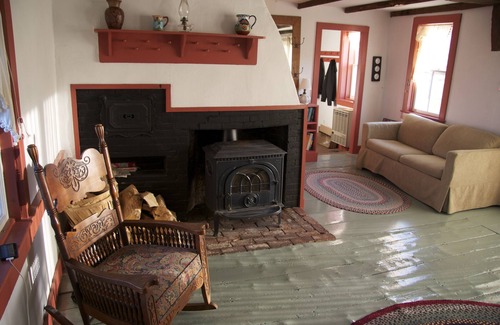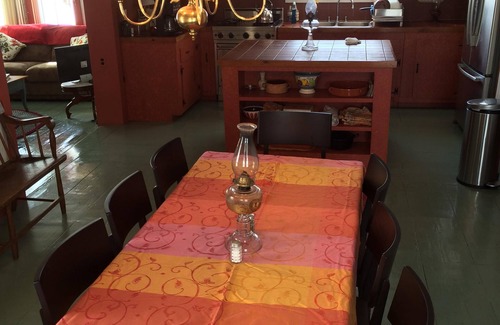 The house has internet service and Wi-Fi adequate for video calls or streaming movies (but not at the same time), and stereo system with input jacks for your smartphone. To right of living room find kitchen with Viking range and exhaust hood to exterior. Dining room has farm table and easterly mountain views. Beyond dining room is first floor master bedroom, one full bath with tub/shower. Upstairs find one full and one single bedroom.