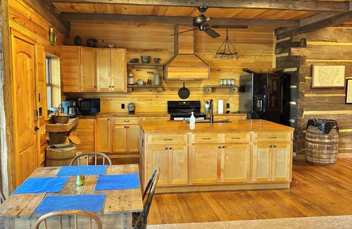 This Arkadelphia historic cabin boasts 2 inviting bedrooms each with a queen bed. With amenities like a washing machine and dryer, WiFi, Mini Split AC, and a full kitchen, guests can relax in comfort. The 2 bathrooms are equipped with a hairdryer and shower for convenience. With a nine acre lake for fishing, other historic buildings on the property, private hiking trails, a wrap around porch with great views, come experience a marvelous stay in this adorable cabin.