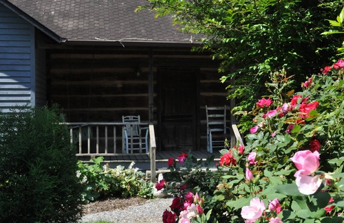 the 1820s Moore log house (owners private home), summer house/gazebo and
