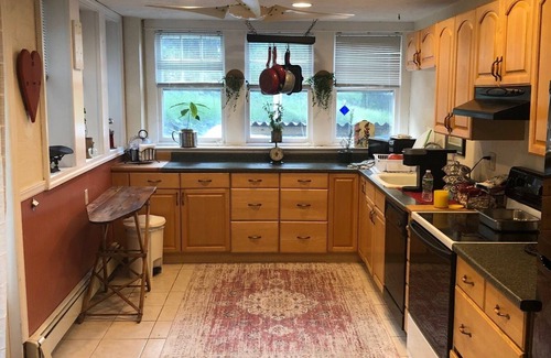 Located in quaint, quiet Historic Mount Sinai. 2mi to Cedar Beach, 2mi to Downtown Port Jefferson, and 2mi to Train Station. Converted convent built in 1856 w/winter water view, across the street from Mt. Sinai harbor, low tide clamming and high tide kayaking and fishing. Next to Episcopal Friary. Antique hardwood floors. Parking available on Premises. Yard Access.