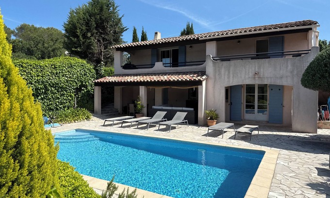 Beautiful private property with salt-water swimming pool, located at the hill above Bagnols en Forêt with view of the Roquebrune mountains.
