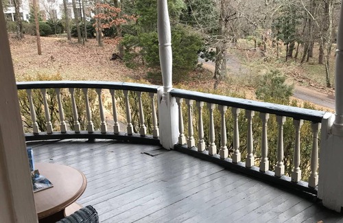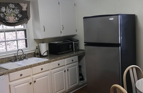 Lovely 1882 historic Cottage located on the beautiful 20 acre property of Anniston Founder’s home, currently a bed & breakfast named Springwood Inn. This 1882 Cottage has its own driveway for parking and is separated from the inn, each having their own privacy. Terrific amenities include a lovely Pond surrounded by trees for Fishing or Exploring! A 9 hole Disc Golf Course! An older, yet playable Tennis court! Privacy! No crowds! Away, but close to everything! The cottage has two bedrooms, each with an antique double bed and one bedroom also has a single daybed. The cottage also has one bath, laundry room, living room with decorative fireplace, WIFI, and television, and an updated and spacious kitchen fully supplied for guest’s cooking. Beautiful furnishings, some antiques, art throughout the cottage, and all tastefully decorated, this historic cottage has great charm and much comfort. Although a cottage, the ceilings are 12 foot and except for the kitchen and laundry /bath, the floors have original heart of pine wood floors. Built by the town’s founder, Samuel Noble, for a nationally well-known landscape painter, Christopher Shearer, to live in while visiting Anniston to sketch a picture of Anniston, the cottage, has its artistic history so we consequently call this the Artist Cottage. That beautiful painting that was sketched in our Artist Cottage, can be viewed in the Calhoun County’s Alabama Room in the Library located in downtown Anniston. What a large painting this is at the size of 9’x4’. It’s beautiful! As for outside, the cottage has two porches, both front and back, there are lovely views along with lots of woods. Drive back the long, private driveway to this cottage and you can't help but feel that you have made the right choice! Such wonderful tranquility! Doggie friendly as well! $50 non-refundable pet fee per pet due upon arrival. Contact Springwood Inn in Anniston for special long term pricing. as well as government rates for long term stays. Talladega nights are priced at $425 per night with a 2 night minimum stay.