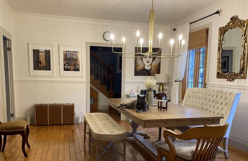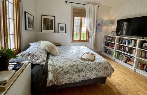 Gorgeous ancestral home, completely revitalized on Québec’s jewel and pride, the island of Orléans, only 15 minutes away from Old Québec City. The island is a haven for artists. There are all kinds of activities as well as sightseeing experiences, from wineries to art shops, to picnics, and kayaking or water activities. This home is situated in picturesque Saint-Laurent, close to the best old-fashioned grocery store you can find anywhere, European-style, fresh baked croissants daily, a butcher shop, wine and beer, and fruit, vegetables and meat from the island. The backyard faces a little community of quaint homes and of course, the river where huge cargo ships pass by daily. There is a fire pit and all the essentials, including a BBQ and air conditioning for when the days are hot. A chocolaterie and various little shops dot the town. You will not regret your stay on the island!