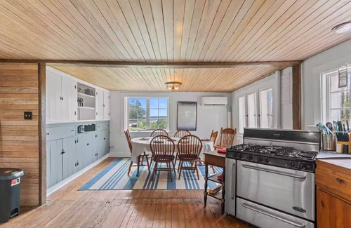 The kitchen is aged with creaky wood floors and updated appliances including an 8-burner gas stove and oven where you can boil up fresh crabs or bake some fresh trout or puppy drum. Enjoy your meal with provided crab utensils inside or out.