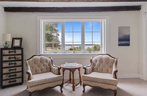 The home is old, and we are excited to have you join us on our journey as we revitalize this "Old Log School". With that there are things to note. The exterior of the home has not been painted yet, and carriage house and front porch will be going under renovation soon. The door heights are lower than standard homes upstairs so if 6ft or taller...duck...In the dead of winter the heat units do well, but the insulation is thin and floors are cold. We provide additional space heaters for winter.
