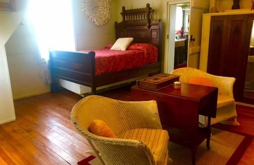 The stair cases up to each bedroom are equipped with heavy duty hand rails. Please use them! These are the original stair cases. Please pay attention when using them. If a potential guest has difficulty using stairs, there are sleeping accommodations on the first floor.