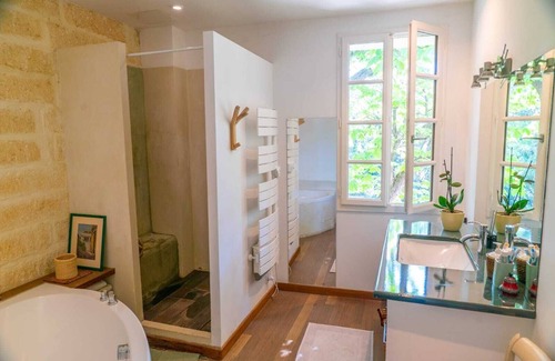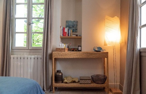 Vineyard farmhouse of the XVIII century, completely renovated in 2008 with authentic materials (old stone, leaf guard ...). A haven of peace in the city, this building of 240m2 is located in a park of about 3000 m2, with mature trees ... It offers 5 air-conditioned bedrooms (3 bedrooms with double bed, 1 room with sofa bed, 1 bedroom with 2 single beds), 4 of which have their own bathrooms (2 with bath and 2 with shower), a large double room with fireplace and piano, a well equipped kitchen and very friendly ...
