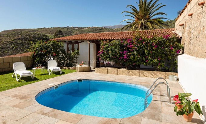 This complex built in the 18th century is made up of various holiday cottages. Fully refurbished and with an area of 2000m2, this is the perfect place to relax and enjoy "Rural Holidays" with Canarian style!In this complex you will find spacious gardens, swimming pools, fruit trees, BBQ, recreational space, exotic birds and a typical Canarian Patio.The Rural House "El Sitio de la Casa" is South West orientated which allows you to enjoy amazing views to the mountains and the ocean.