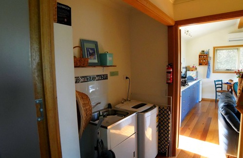19 Blue is fully equipped with a queen size bed and laundry facilities. The kitchen has a cooktop and microwave oven.