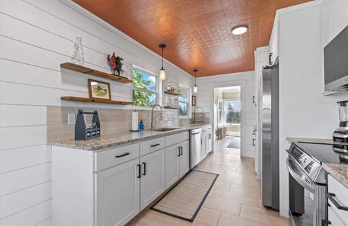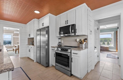 Evenings are made for cozy gatherings. Cook meals in the outdoor kitchen, bake pizzas together, or grill while enjoying the cool fall air. Later, choose from three fire pits to sit by as the stars come out, or retreat to the hot tub for a private soak. Inside, the farmhouse provides all the comforts of home with high-speed internet, laundry facilities, and plenty of space to spread out.