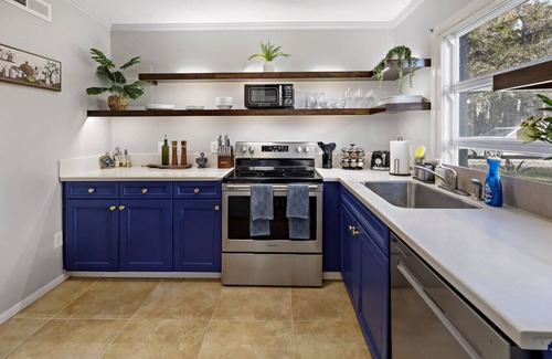 • Kitchen: Fully equipped for your culinary adventures, with a cozy dine-in area. Includes dishwasher, stove,