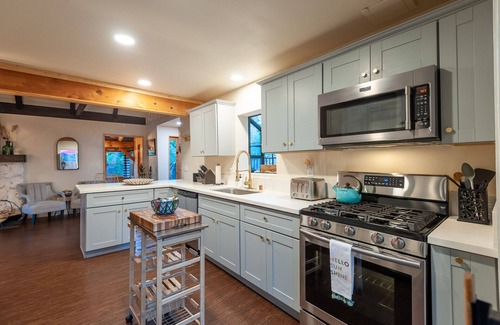 Escape to our chic 1928 mountain cabin, nestled within the serene Twin Peaks community, just a 10-minute drive from Lake Arrowhead Village. Combining Mid-Century Modern decor with eco-friendly design, our cabin boasts spacious decks, BBQ area, hot tub, outdoor fire table seating up to 8, gas fireplace, and arcade games, making it perfect for your next family vacation or friends' gathering. Nearby trails and lakes provide endless outdoor adventures for all!