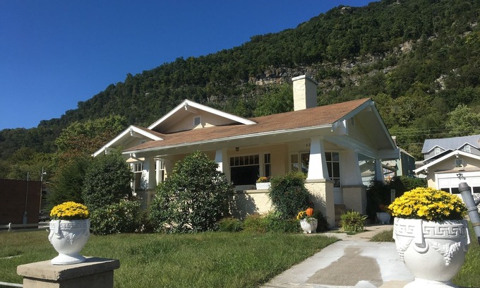 Craftsman “Oklahoma Kit Home” located in the heart of Cumberland Gap, Tennessee. Within walking distance of restaurants and shops, as well as the Cumberlands Gap National Historical Park. This house has 3 bedrooms and 1 bathroom, and comfortably accommodates 6. Charmingly furnished with vintage pieces. Easy to find on the main strip through town with amazing mountain views. Located directly across from Festival Park.