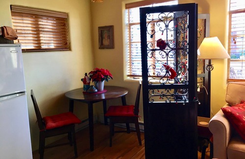 'CASA DITA' is an enchanting 1930's Adobe Casita in the Heart of Santa Fe! Location is really a plus for us at Casita Dita. You can walk to to the Plaza, Farmers Market/Railyard District and Canyon Road areas. The South Capital area where the casita is located is an established neighborhood with a great mix of architecture, old trees, small streets and residents.Trader Joe’s, Whole Foods and Kaune’s Neighborhood market are all within walking distance or a short 3 min. drive away.