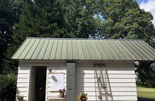 Our 1930’s cottage and vintage shop sits adjacent to our private residence, but offers privacy as it stands alone with its own private entrance, carport, and parking. Enjoy some the beautiful surrounding trees, fresh coffee on the bistro table/chairs, a fire in the adjacent fire pit, or let your little ones play in our fenced-in yard/swing set. Our home is set in a beautiful wooded area, on a private driveway, but is less than a ten minute drive from downtown Winston Salem or Wake Forest University. We’re also a two minute drive from popular Muddy Creek Parkway (perfect for an afternoon stroll). A window AC unit is available for use upon request (there is currently no heat source other than a plug in space heater), and cold water is accessed for use in the half bath (but there is currently no shower or tub). This cottage doubles as a local vintage shop and all items are available for purchase through our Venmo account. Come relax, and soak in all WS/NC has to offer!