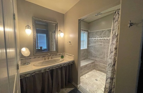 Come stay at the RoccaDawn (pronounced Rock-a-Dawn) and soak in the historic charm of an English Tudor home. The Peacock Room is located on the first floor and is handicap accessible. The Peacock Room includes a private entrance with a ramp, a queen size bed, a 60" TV, and a private bathroom with a handicap accessible shower. The shared outdoor space includes the koi pond and a patio where all guests are welcome. You will be provided with your own space in the refrigerator and cabinets in the kitchen on the first floor. Free parking is available in the driveway or in the street.