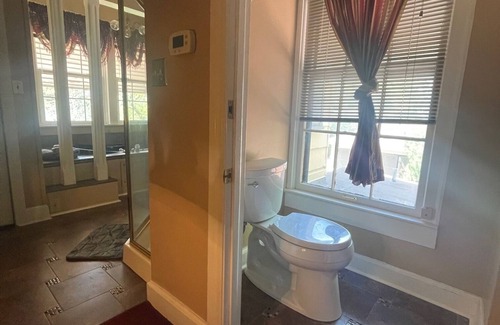 Come stay at the RoccaDawn (pronounced Rock-a-Dawn) and soak in the historic charm of an English Tudor home. The Merlot Room is located on the second floor and includes a deep bathtub and a standalone shower. The Merlot Room includes a queen size bed, private bathroom, closet space, and a dresser. The koi pond out back can be admired from the window. The shared outdoor space includes the koi pond and a patio where all guests are welcome. You will be provided with your own space in the refrigerator and cabinets downstairs. Two washing machines and a dryer are available for your use in the basement. Free parking is available in the driveway or in the street.