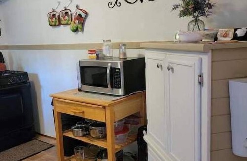 We would love to host your stay in this 1940’s house is in a quaint quiet area next to great park! 2 mi from main interstate, but no freeway noise can be heard. 1100 sf home, 2 large Bedrooms, comfy large Livingroom, 2 smart TV's, one is movable. 1 Bath-Tub/Shower combo, Kitchen is supply stocked and cook ready, WIFI 400+ speed, Large fenced backyard w/patio & Lakeview to area park and walking trails. Outside BBQ pit and chairs. Window Units cooled, Radiator (safest) Space Heaters warmed. Lots of extras included a pet friendly very large back yard! **We love longer stays, ask about longer stay discount, 30+ nights means no occupancy taxes at all!**