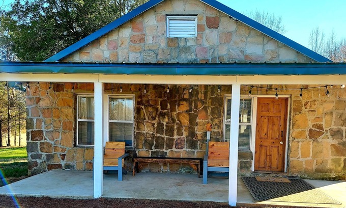 Authentic 1940's Farmhouse Cottage located in rural Tishomingo County. The home has two bedrooms, one bath, and a fully stocked kitchen. The house was built over 80 years ago with stone that was quarried locally. More interestingly, most of the stone on this home was laid by a woman--Mrs. Beulah! Character and Charm both inside and out.