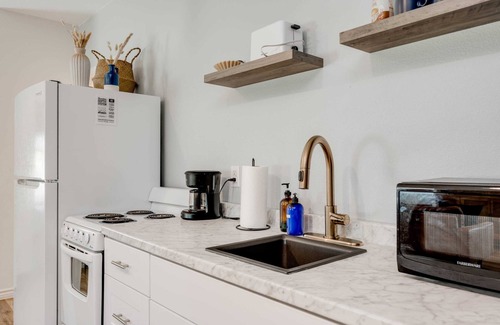 - Our small but mighty kitchenette is stocked with the basics to make a meal: