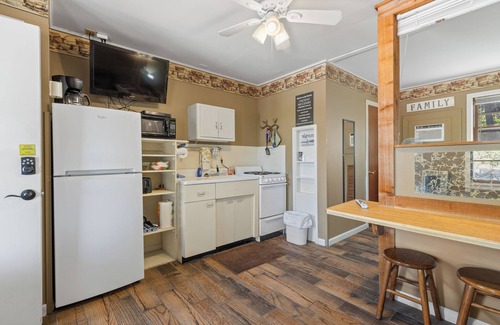 Welcome to Sunset on the Shoals – a cozy lakeside retreat on Bull Shoals Lake. Cabin Four is a one-bedroom, one-bath cabin with a full kitchenette, perfect for couples, families, or small groups. There is also a pull out sofa for extra sleeping arrangements. Enjoy peaceful surroundings, beautiful lake views, and easy access to fishing, boating, and relaxation. Included on the property is a shared game room, large 80 ft deck overlooking the lake and a shared swim dock -no lifeguard on duty. Enjoy all that the lake has to offer or take a day trip to nearby attractions like Branson, Mo.