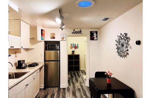 This cute single level apartment has everything you need to stay for a day, a week, a month or three months. The bedroom has a brand new tempur pedic mattress, a smart TV and a desk for your accessories or working station. The kitchen has all the basic cooking needed essentials. There is a dining table in the kitchen can accommodate 2-4 people for a casual meal. Full bathroom has a walk in shower and plenty of shelving spaces.