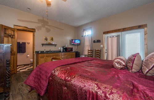 Comfortable Accommodations: Featuring a cozy queen bed and a well-equipped kitchenette, the Cowboy Guest Suite ensures that you and your wedding party have all the comforts of home during your stay.