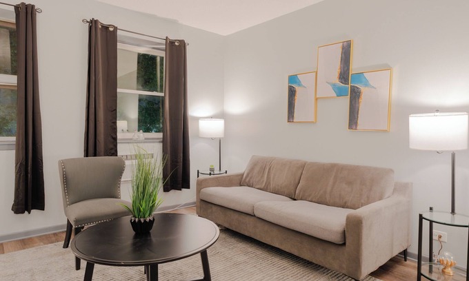 Relax in our inviting 1BR apartment, featuring 1 queen bed for a restful night’s sleep. The cozy living area offers a large flat-screen TV and a comfy sofa (which converts to a sofa bed), providing the perfect spot to unwind after a day of exploring. Enjoy high-speed Wi-Fi to stay connected throughout your stay.
