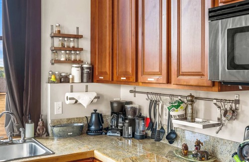 ✦ Full kitchen: oven, stove top, microwave, water kettle