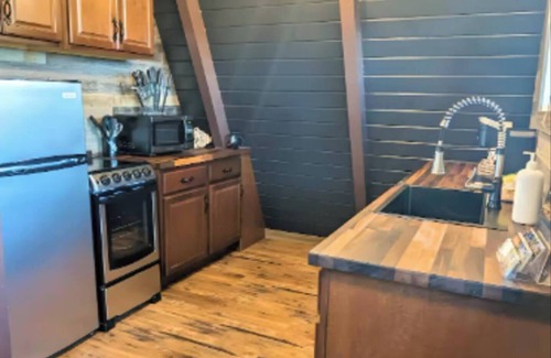 Ye've got yerself one fine bedchamber and a bathroom fit for a pirate king. The full kitchen will be the envy of all the seas, and there be enough room for a crew of up to six hearty sailors. Stay connected with the world above the waves with the free WiFi and cable. And when the winds be chill, warm yer bones by the wood burnin' fireplace (though the wood be not provided, arrr!). The hardwood floors add a touch of class to this pirate's den. And fear not, ye can bring yer faithful furry mate along for the adventure, for pets be allowed with a pet fee of $25 per night and tax. Ye'll have two spots to park yer pirate ship, but beware, ye must climb the stairs to reach the bedchamber (the bathroom be located on the ground floor).