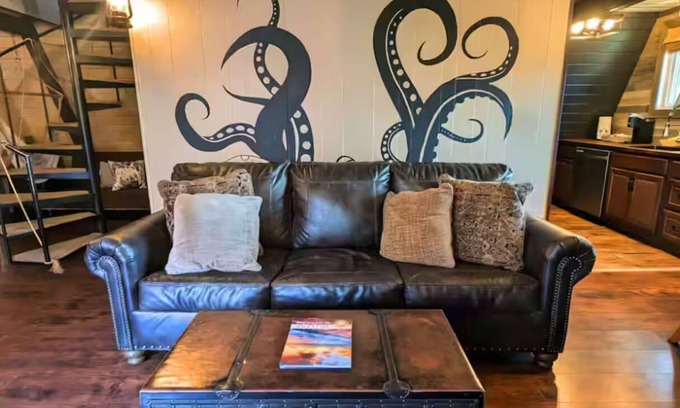 Ahoy mateys! Yer next pirate's adventure be waitin' just steps from the shore! Come celebrate the salt life at this scallywag's paradise, where ye'll be greeted by a treasure trove of booty. Ye young swabs will have a blast scourin' the place fer pirate's playthings, whilst ye and yer crew gather 'round the barrel table for a hearty feast and warm up by the wood-burnin' fire. This be the crownin' jewel of yer next coastal foray, I tells ye!