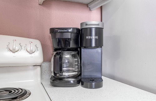 - You can whip up meals in the fully equipped kitchen with oven, stove, microwave, fridge, kettle, K-Cup coffee maker, coffees, teas, etc