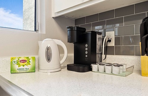 - You can whip up meals in the fully equipped kitchen with oven, stove, microwave, fridge, kettle, K-Cup coffee maker, coffees, teas, etc