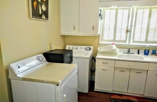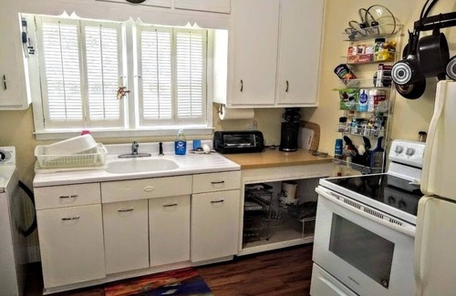 Colonial style home in Historic Brunswick built in 1928 that was made into a triplex (3 separate units). Downtown festivities, restaurants & entertainment <5 mins & conveniently located between Jekyll & St Simons Islands & their beaches < 20 mins away. This cute small 1br apt is on the bottom floor & you have your own shaded sitting area on a shared porch.
