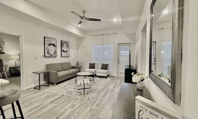 No Car Needed! Furnished Modern/Contemporary Urban Living in Suburban location. Located in the unique University Circle in Katy, TX surrounded by more than $100 million development with easy access and walk-ability to amenities such as dining, grocery, clothing, housing, transportation, education, leisure, etc. Easy access to i-10 & TX 99 . Minutes away from Katy Mills Outlet Mall, Katy Asian Town, Memorial Herman Hospital, Energy Corridor area, University of Houston, Andretti indoor cart, etc