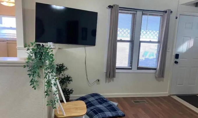 Enjoy an affordable experience at this centrally-located place. Located in the center of Topeka, this private old-charm 1BR w/king bed located adjacent to the Stormont Vail Hospital , downtown, and a short drive to trendy NOTO. Close to the Kansas Capitol and I-70. A pet is permitted. Two story with stairs to climb to second floor bedroom and bathroom. NON-SHARED.