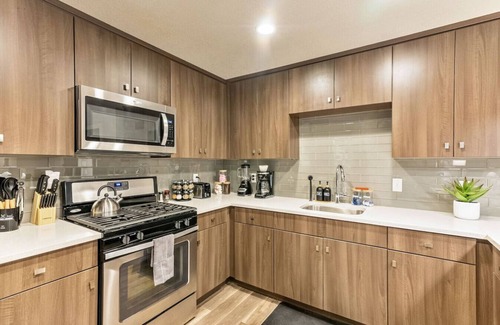 The modern and comfy getaway will leave you in awe with its carefully picked amenity. Stylish wooden floors extend throughout the entire apartment.