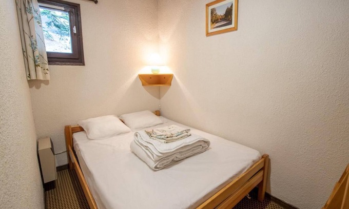Les Chalets Les Epervières are located in La Norma resort, next to the forest. Each chalet is made of 6 apartments. Chalets are situated at the upper part of the resort 400 m from shops and the departure of the gondola. Surface area : about 35 m². 1st floor. Orientation : North, West, North-West. Living room with pull-out sofa. Bedroom with double bed. Sleeping area with 2 bunk beds. Kitchenette with oven, microwave, electric cooking rings, fridge. Shower room with shower, WC. Balcony. The beds in elevation are not suitable for children under 6 years.