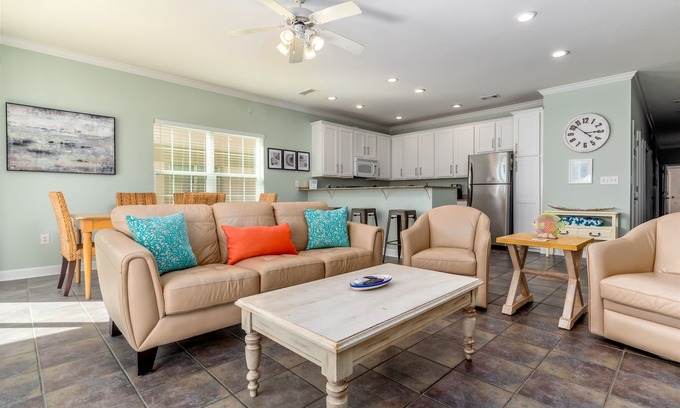 Fully Stocked Kitchen: Create culinary delights in the fully stocked kitchen, equipped with all the essentials for home-cooked meals. Whether you're a culinary enthusiast or just looking for convenience, this kitchen has you covered. You will need to bring your own seasonings and spices.