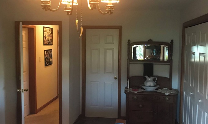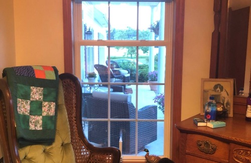 Enjoy a peaceful stay at this bed & breakfast in Milford. The room features a full bed, perfect for a comfortable night's sleep with an attached bath. With amenities like an iron, hair dryer, AC, WiFi, and heating, guests will have everything they need for a relaxing stay. The bathroom comes equipped with a hair dryer as well. Come experience the tremendous hospitality and gorgeous surroundings of our nice property. We look forward to welcoming you to our place. We serve a unique breakfast each morning