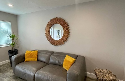 Enjoy a stylish experience at this centrally-located place. Located 5 min to downtown Fort Lauderdale, airport and beach. This 2 bedroom (1 king size and 1 queen size bed) 1 bath pet friendly (for additional fee) unit has been completely remodeled and has stylish furniture. Unit comes with 2 free parking spots, washer and dryer, air conditioning, big screen TVs, back patio and full equipped kitchen. Easy check-in.