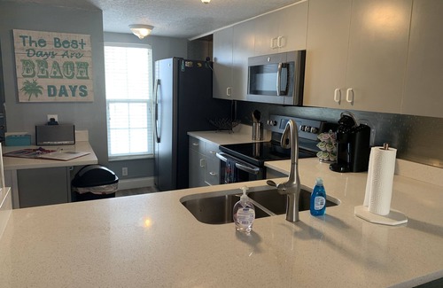 Our 2/2 condo is newly updated and tastefully furnished to provide you and your guests with a comfortable and EASY beach atmosphere. Our unit can accommodate a total of 5 guests. We offer a King size bed in the master and a combination of a Queen sized bed and a Twin bed in the guest bedroom. The kitchen is fully stocked with all the appliances, cookware, and utensils necessary to make a home cooked meal. The Point East Community offers a covered pavilion, 2 beach side shuffleboard courts, a seasonally heated pool and kiddie pool. Flagler Avenue is just a 2.7 mile drive and offers many options for beachfront dining, shopping, or just enjoying an ice cream after a relaxing day at the beach. Please feel free to message me with any questions you may have. Book your beach getaway today!