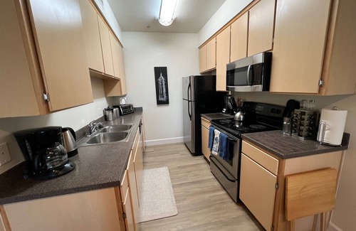 We have 2+2 Fully renovated unit with all furnishings with fully kitchen equipped, all utilities are included , Cal king size bed in the bedroom and (2) full size beds & and queen sofa bed, air mattress in the living room.