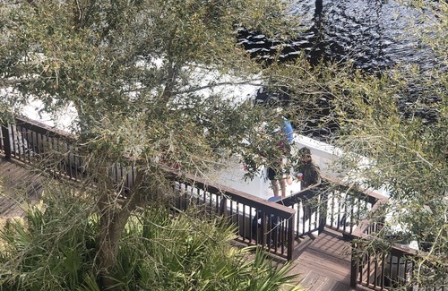 The unit provides comfortable sleeping with a king in the master and then a double and a bunk twin bed in the 2nd bedroom. The condo features new kitchen appliances, a dining room area seating 8 as well as a living area that is the perfect space to gather for games or tv at night. The balcony area gives you the perfect views of the gulf spanning all the way to Cape San Blas. You can watch the sun both rise and set over the ocean waters from the balcony. If you have a boat, you can easily launch it from the Mexico Beach public boat ramp and take the canal route to Waterside, enabling you to dock your boat at the property during your stay. There is power and water at the docks for your use.