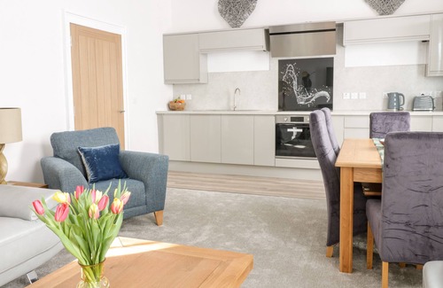 Amenities: Gas central heating with electric flame effect fire. Electric oven and hob, dishwasher, microwave, fridge, freezer, washing machine. Smart TV, WiFi, Netflix, USB sockets in most rooms. Fuel and power inc. in rent. Bed linen and towels inc. in rent. On-street parking, or in free car park 100 meters away. Shared front courtyard (with one other property), with patio and furniture. Shed in courtyard with padlock for bike storage. Sorry, no pets and no smoking. Shop 0.3 miles, pub 0.1 miles. Note: The private entrance to property has a set of stairs leading up to the property which may not be suitable for those less mobile; Once inside the property there is a step up in both bathroom and shower room, please take care - Otherwise, it is all on one level and easily accessible. Please note: the property has a minimum stay of 2 nights. Please note: This property cannot accept a Saturday check in.