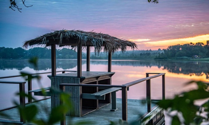 Guests enjoy the whole 2 acres property with direct access to the lake including kayaks and canoe (must stay on property), tikki bar dock, gazebo, and green space.