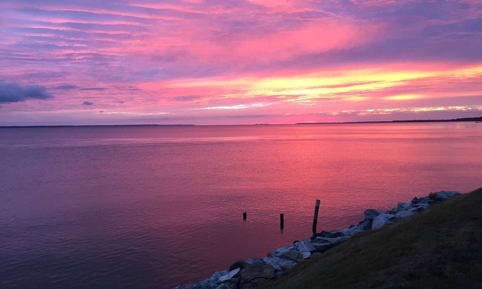 Welcome to Paradise Point where you’ll be surrounded by sweeping water views. The Potomac River is on one side of the house and Blake Creek is on the other. In the middle of these two bodies of water is a private beach where you can relax, swim, fish and explore. You’ll see diving ospreys and soaring eagles as you sip your morning coffee or explore the creek by kayak. Our house is great for families, children and well-mannered dogs. As the (unfiltered) pictures show, the sunsets are absolutely spectacular! The expansive yard has a fire pit with Adirondack chairs and plenty of room to set up the cornhole boards. Behind the garage you’ll find a screened-in room that is a perfect spot for a crab feast, playing darts or just hanging out. This room is a great for kids and teenagers to hang out at night while the adults enjoy the cozy house. The pier on the river, as well as the platform on the back creek are yours to use. The boat lift is not part of the rental but you can tie up to any of the other pilings. Bring your fishing rods!!