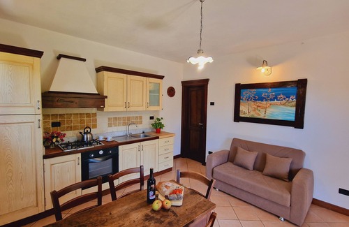 The property is in the village of Villetta which has one of the best views in Tuscany. The owner of the apartment also owns the restaurant/ pizzeria a few minutes walk away and is a great host. In the village there is also a bar and a couple of shops. 10 minutes walk away there is an excellent wild swimming spot. The apartments are set just above the local church, the road to the house is narrow.