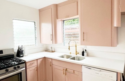 Charming 2 Bdrm Midcentury Vibe with a New Pink Kitchen – Perfect Wedding Accommodation